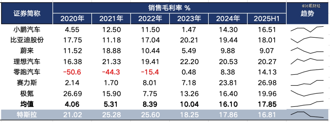 在特斯拉毛利率持续下滑的同时,近两年国内竞争对手则凭借规模化、供应链整合及成本控制能力,盈利能力得以提升。